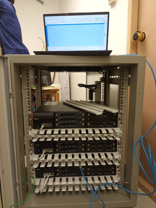 ตู้สาขา NEC SV9100 จำนวน 3 ตู้ ที่จะทำการติดตั้งใหม่แทนของเดิม วางบน Rack เรียบร้อย