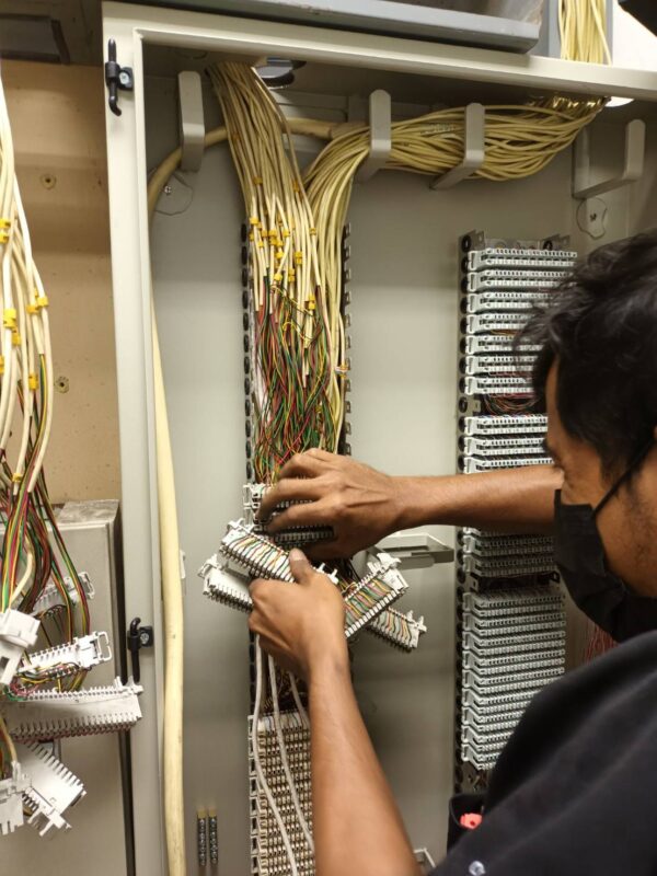 เข้าสายที่ตู้สาขาเรียบร้อยพร้อมทดสอบระบบโทรศัพท์