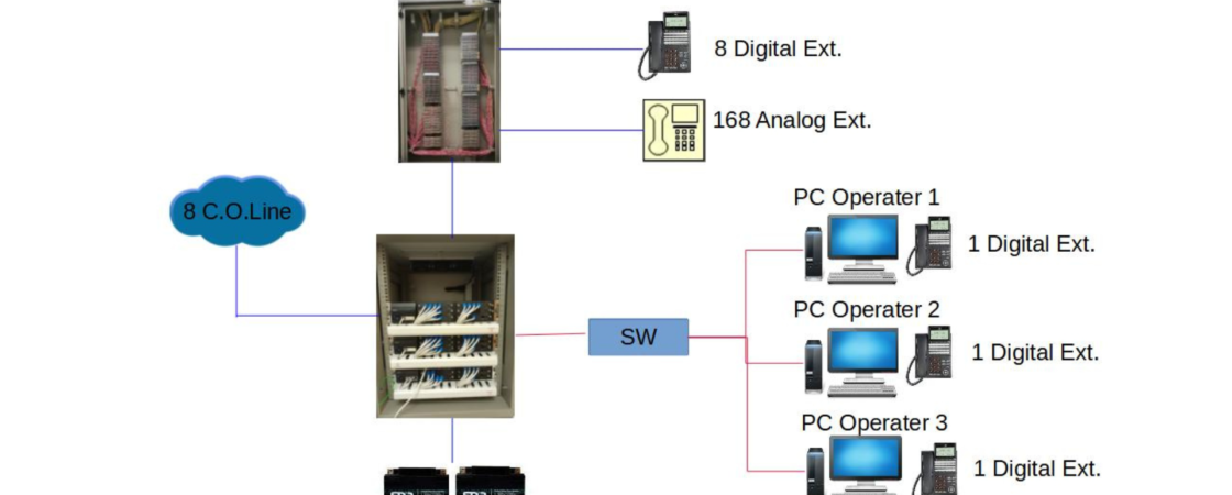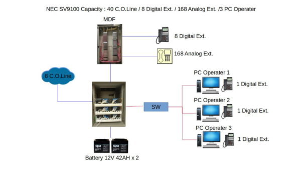 Diagram งานติดตั้งระบบตู้สาขาโทรศัพท์ NEC SV9100 : ขนาด 40 Co.Line / 8 Digital / 168 Analog/ 3 PC Operater