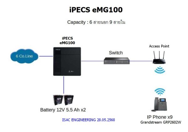IP PBX iPECS eMG100 Capacity : 6 CO.Line / 2 Digital Line / 6 Analog Line / 9 IP Phone