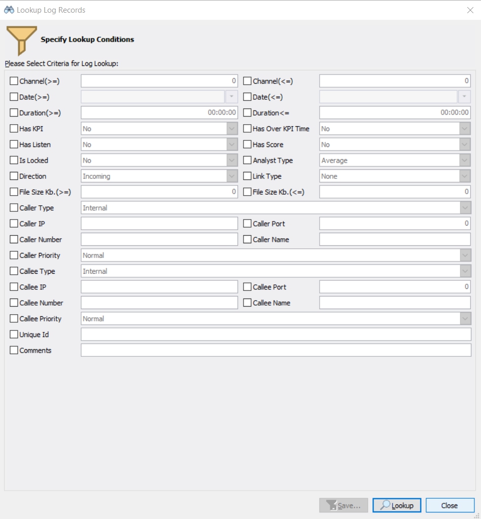 – สามารถกำหนดให้ระบบเลือกบันทึกเสียงจากเบอร์โทรศัพท์ของผู้โทรเข้า (Caller ID) /เบอร์ภายในที่รับสาย (Called ID), IP Address or Mac Address