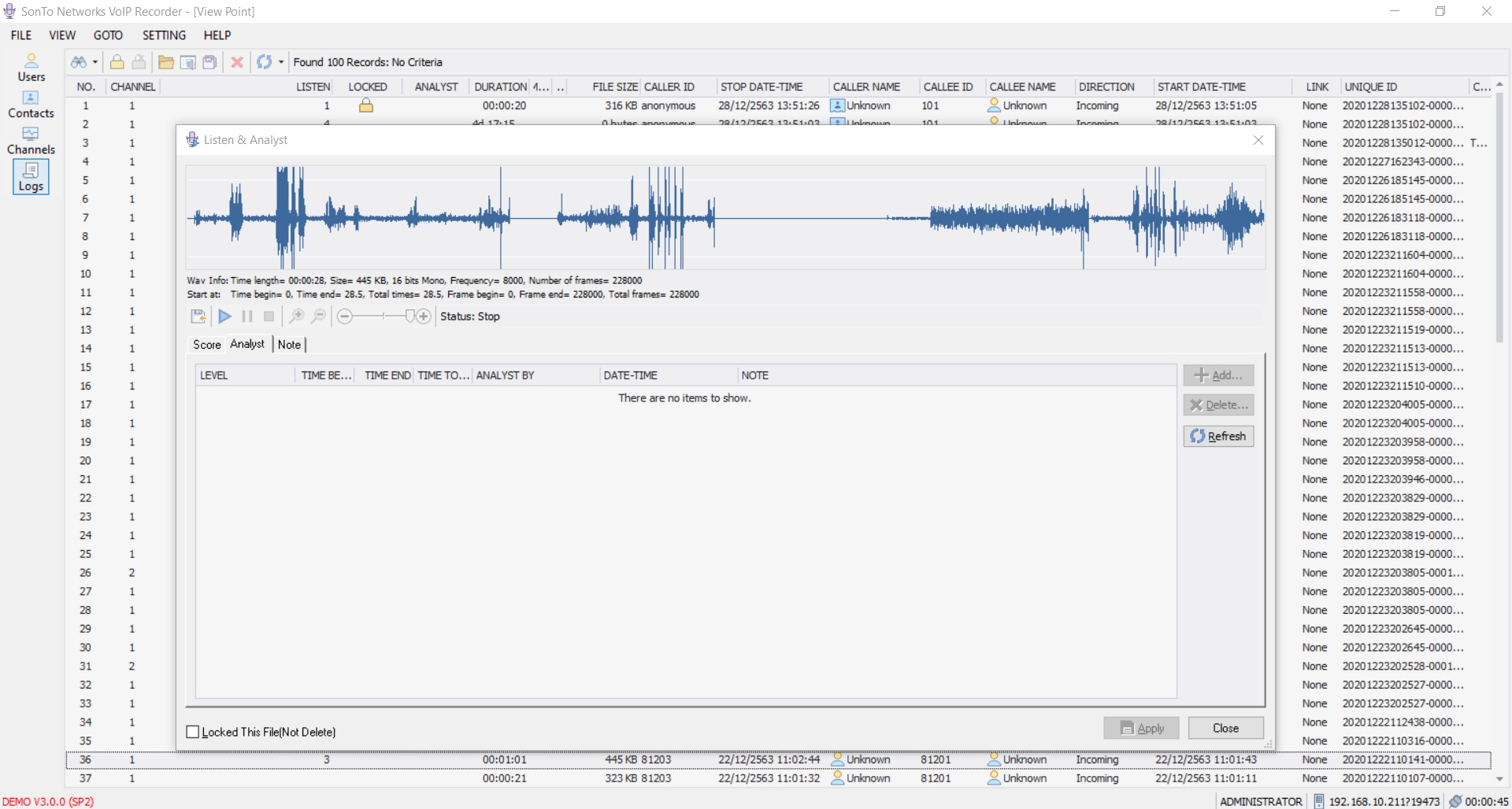 – สามารถตรวจสอบสถานการณ์บันทึกเสียงแบบ Real-Time และสามารถฟังการบันทึกเสียง Real-Time ที่กำลังบันทึกขณะนั้น (Real-Time Monitoring and Listening to the Recording Conversation)