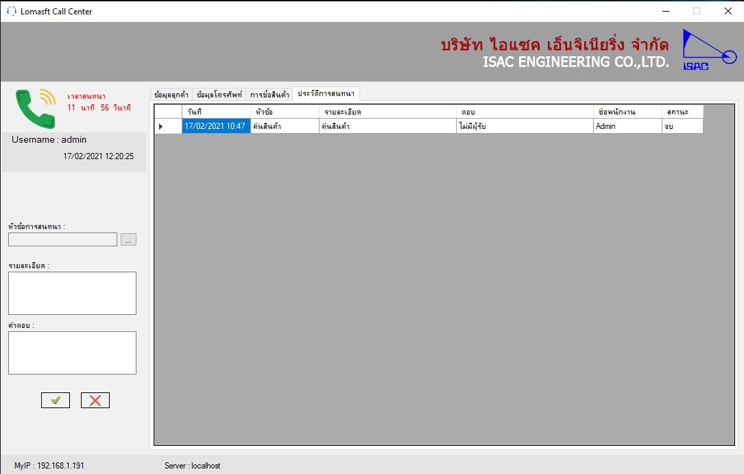 สามารถตรวจสอบประวัติลูกค้าเมื่อมีสายเรียกเข้าขณะรับสายสนทนา