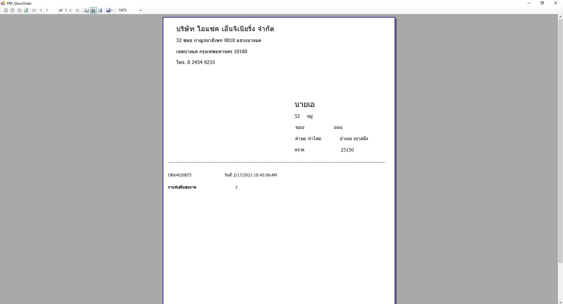 15. รูปแบบรายงานที่อยู่และข้อมูลการสั่งซื้อสินค้า