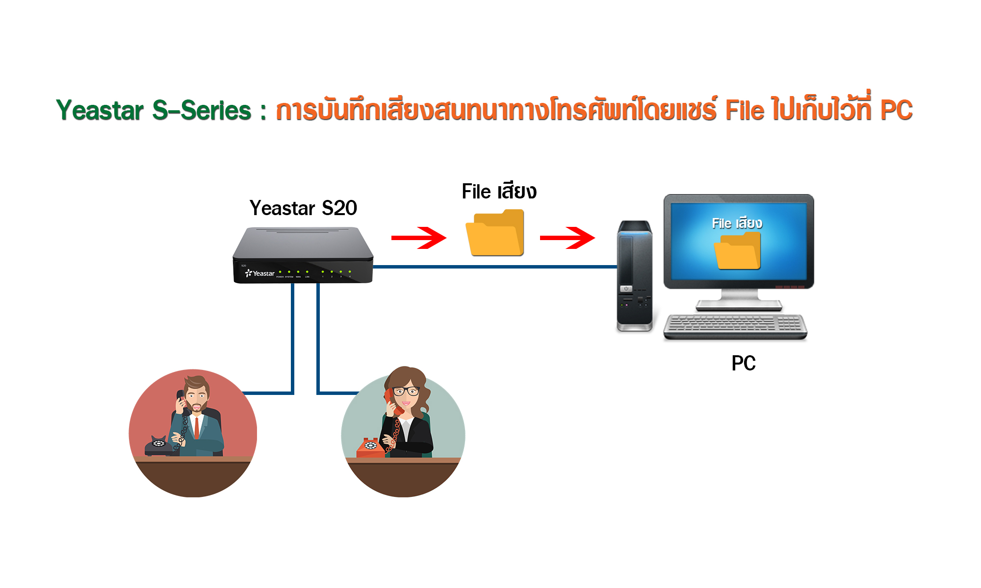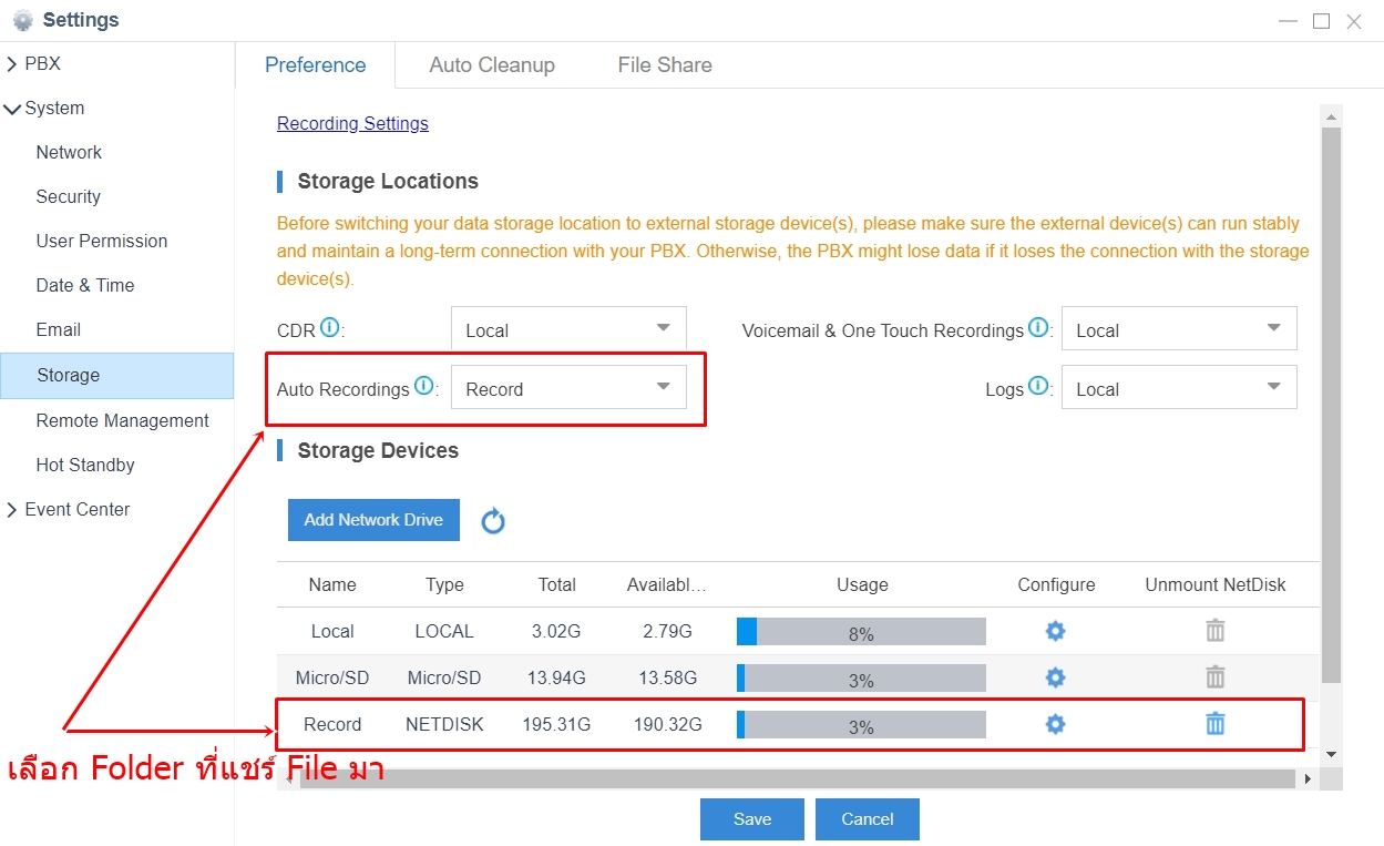 Yeastar S-Series บันทึกเสียงสนทนาทางโทรศัพท์ โดยเก็บ File บันทึกเสียงไว้ใน PC ที่แชร์ Folder ในวงไอพีเดียวกัน