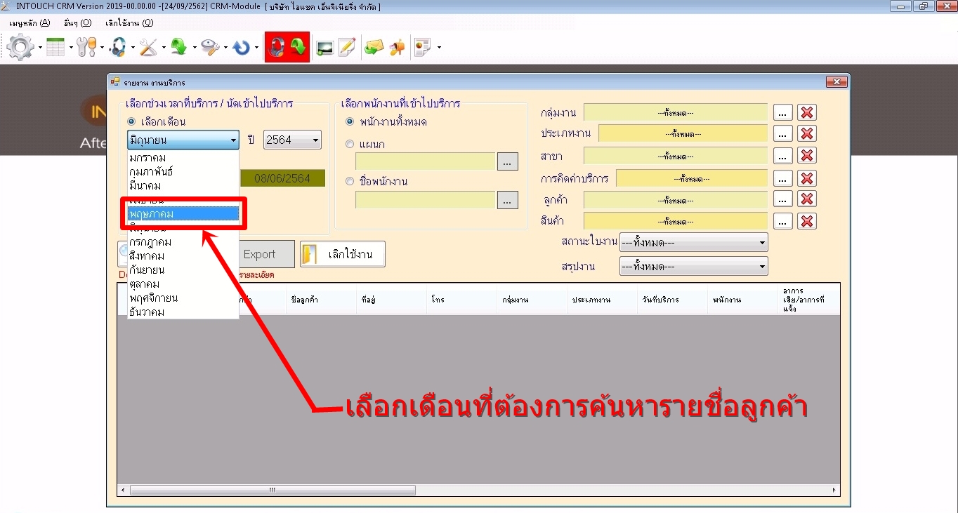 เลือกเดือนที่ต้องการค้นหารายชื่อลูกค้า