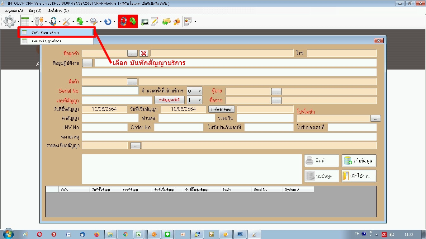 เลือก บันทึกสัญญาบริการ
