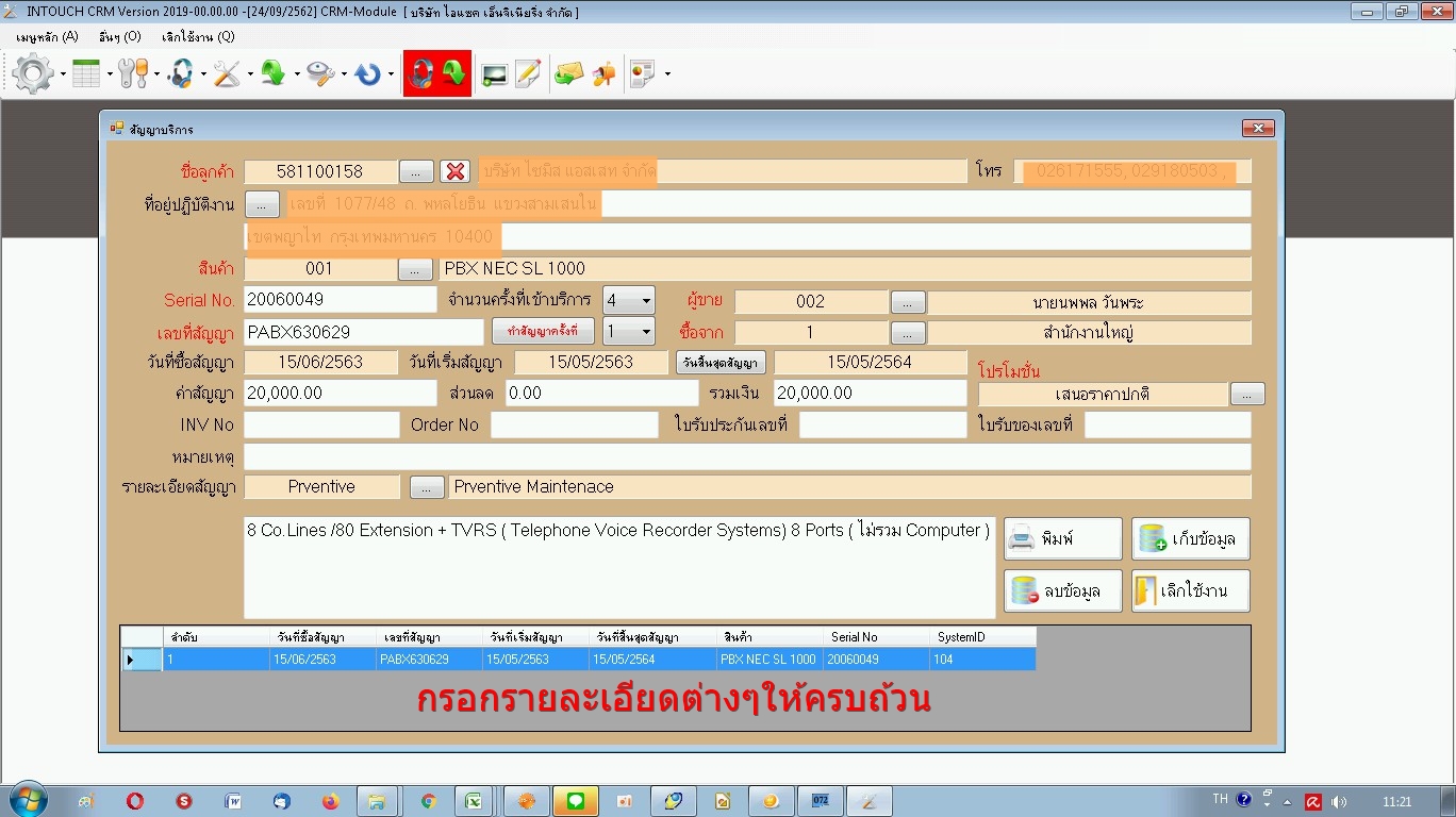 กรอกรายละเอียดต่างๆของลูกค้าให้ครบถ้วน กด เก็บข้อมูล