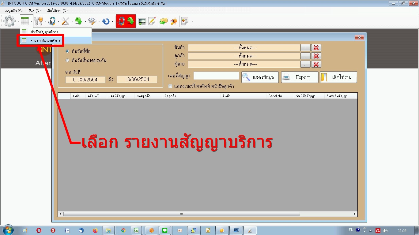 เลือก รายงานสัญญาบริการ