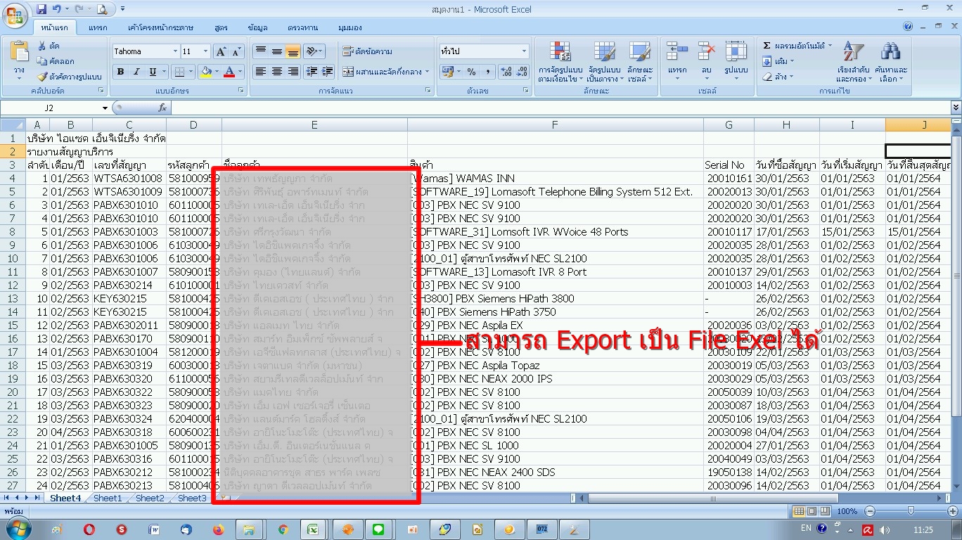 สามารถ Export เป็น File Exel ได้