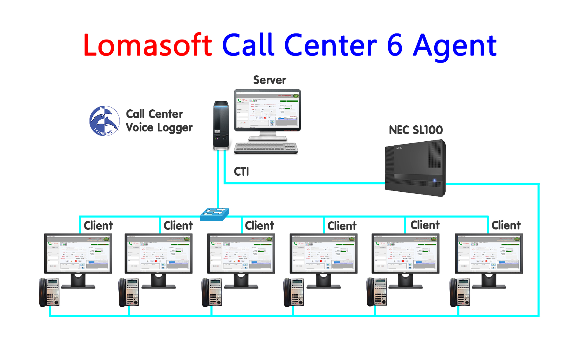 Lomasoft Call Center Solutions เป็นการผสมผสานการทำงานระหว่าง PBX และ Software Lomasoft Call Center โดยมีCTI ( Computer Telephony Integration ) เป็นตัวกลางในการส่งข้อมูลสถานะการใช้งานพร้อมCaller ID ให้ Software Lomasoft Call Center Pop-up ข้อมูลโทรศัพท์และข้อมูลลูกค้าในกรณีที่มีการบันทึกในระบบ ทั้งนี้ในกรณีที่ไม่มีข้อมูล ระบบจะทำการส่งเบอร์โทรศัพท์และขณะสนทนาสามารถบันทึกข้อมูลลูกค้าลงในระบบได้ทันที ไม่ว่าจะเป็นชื่อที่อยู่ , บันทึกการสนทนา ฯ นอกจากนี้ยังมี Options เสริมคือ TVRS ( Telephone Voice Recorder Systems ) บักทึกเสียงสนทนาทางโทรศัพท์เพื่อนำข้อมูลเสียงมาปรับปรุงการให้บริการอีกด้วย