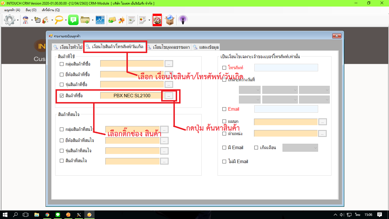 Lomasoft Call Center อีกหนึ่ง Feature ของระบบ การค้นหารายชื่อลูกค้าโดยเลือกจากรายการสินค้าที่ลูกค้าซื้อ
