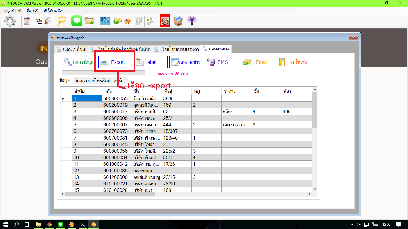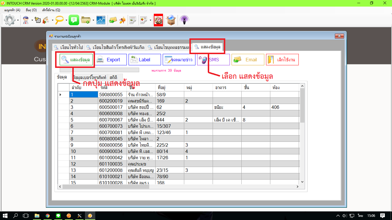 กดปุ่มเลือก แสดงข้อมูล ข้อมูลลูกค้าที่สั่งซื้อ PBX NEC SL21000 จะโชว์ขึ้นมาทั้งหมด