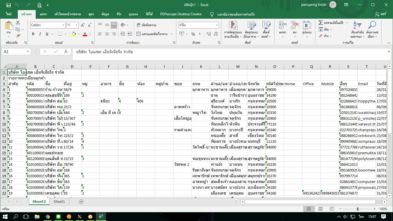 รายชื่อลูกค้าที่ซื้อ PBX NEC SL2100 จะแสดงขึ้นมาในรูปแบบของ File Excel