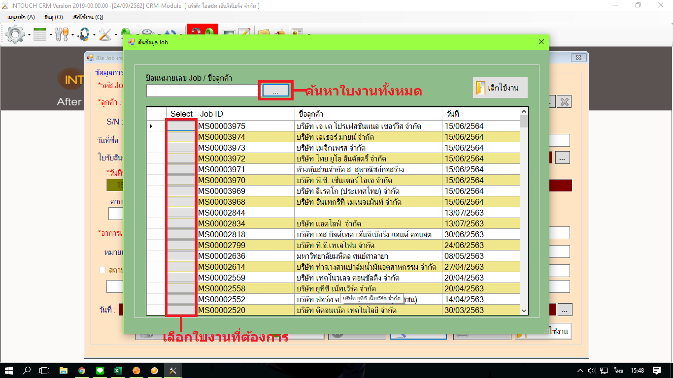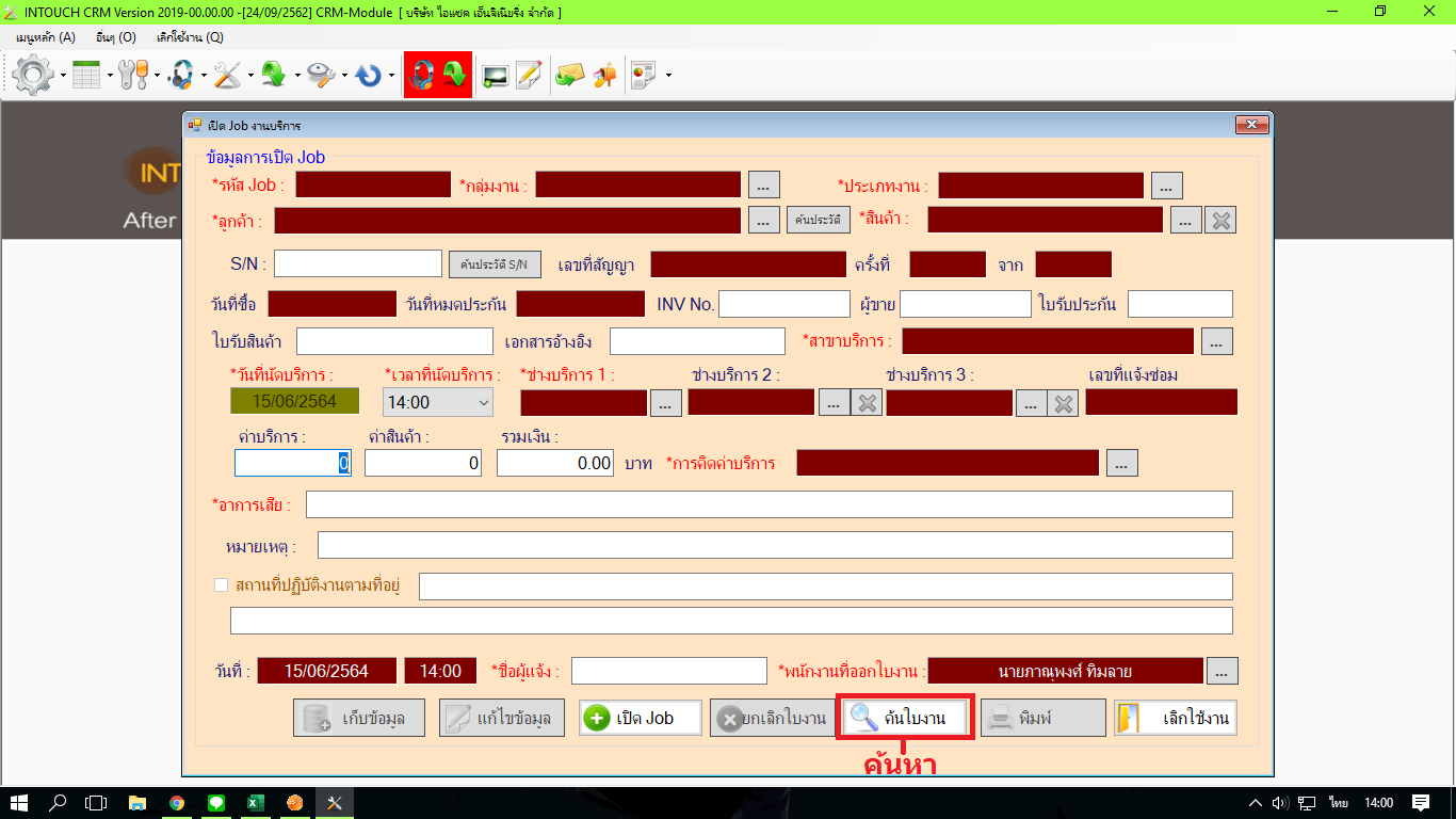 ในหัวข้อ เปิด Job งานบริการ เลือก ค้นหา