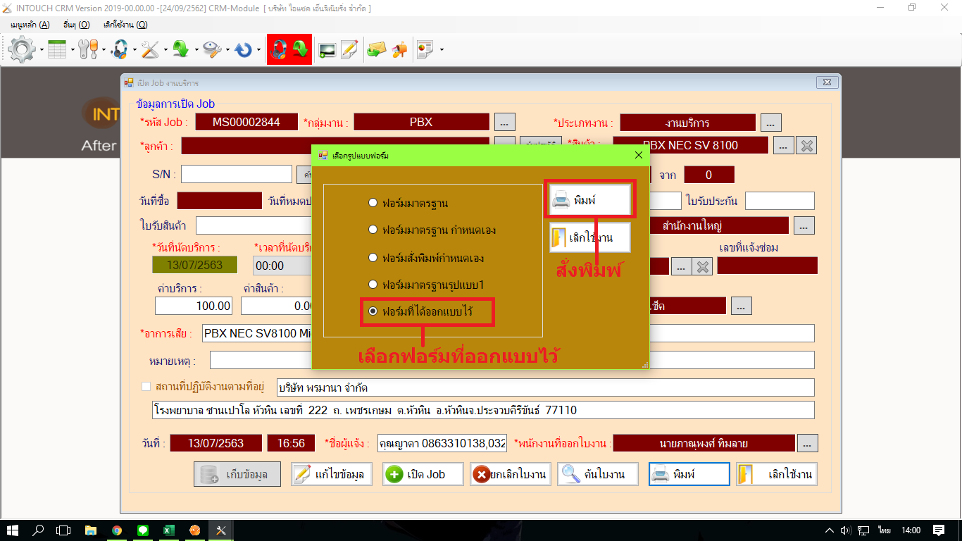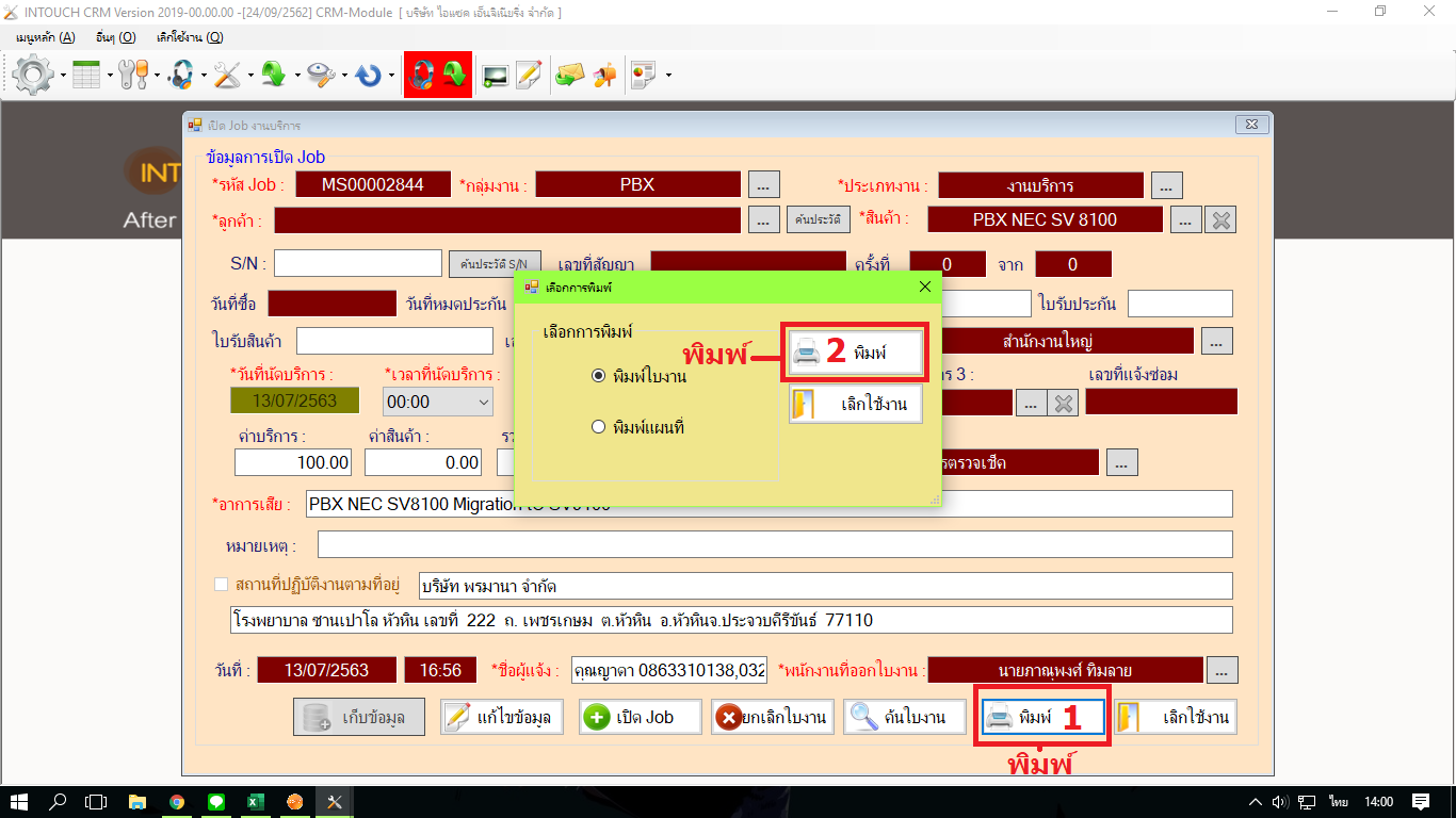 เลือก พิมพ์ใบงาน กดที่ พิมพ์