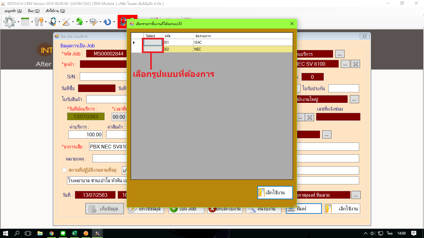 เลือก เปิดใบงานบริการตามรูป