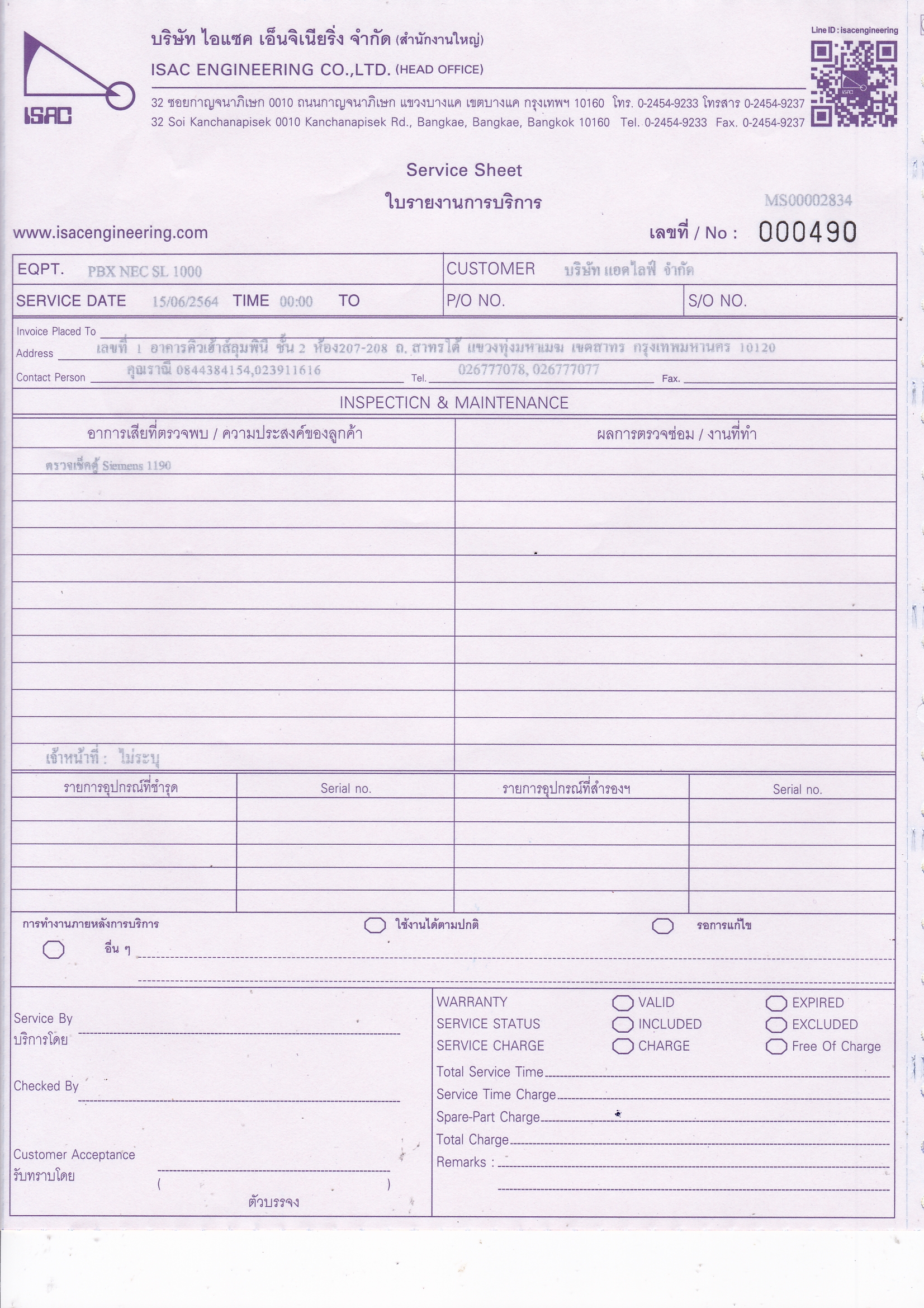 Lomasoft Call Center อีกหนึ่ง Feature ของระบบ การเปิดใบงาน(Service Sheet)