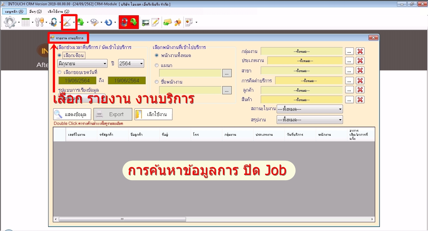 การค้นหาข้อมูลงานปิด Job เลือก รายงาน งานบริการ