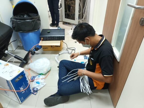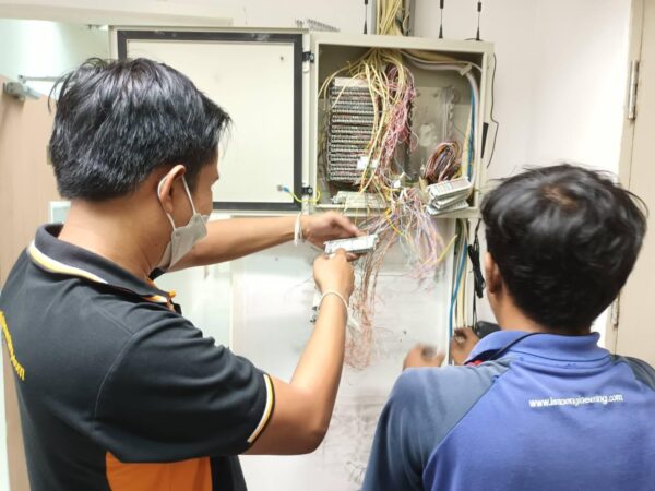 ตอนนี้ช่างก็ได้ทำการเข้าสาย Lan สำหรับติดตั้งในตู้ใหม่