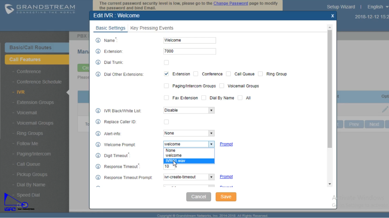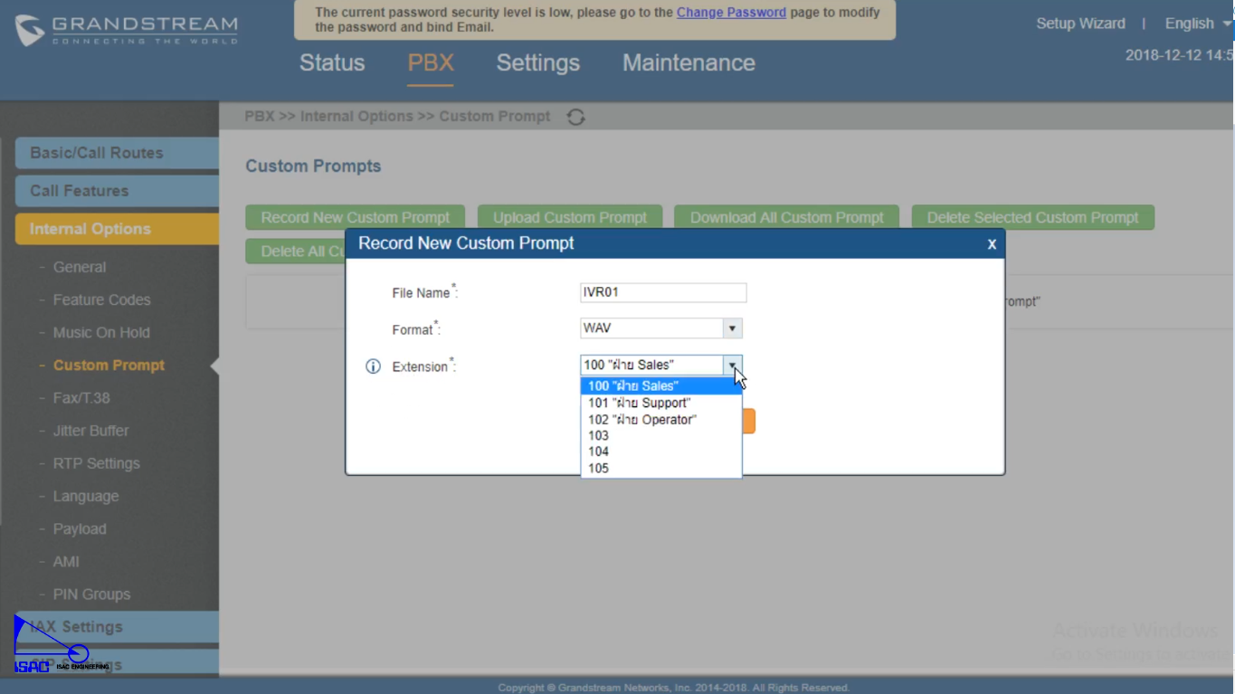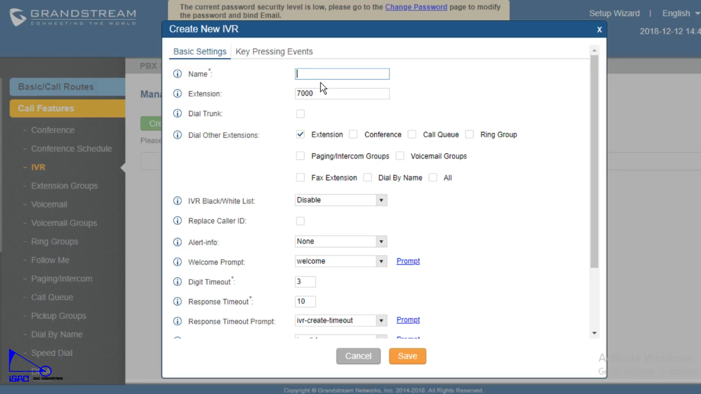 ระบบตอบรับอัตโนมัติ(IVR)ถือว่าจำเป็นมากในการทำธุรกิจสมัยนี้ เพราะเป็นสิ่งจำเป็นที่จะทำให้ลูกค้าประทับใจในการใช้บริการ โดยตัวตู้สาขา Grandstream รุ่น UCM6204 จะมาพร้อมระบบ IVR ในตัวใช้งานง่าย วันนี้ทางเราบริษัทไอเเซคเอ็นจิเนี่ยริ่งจะมาสาธิตการใช้งานเบื้องต้นกันครับ