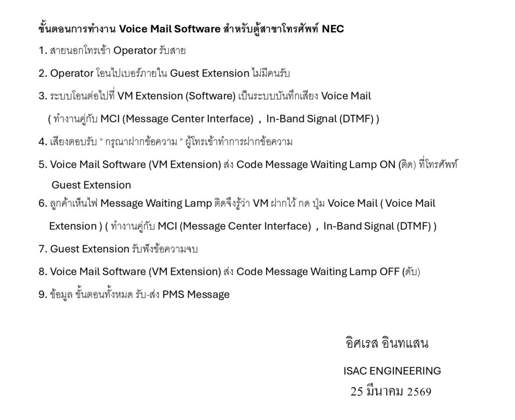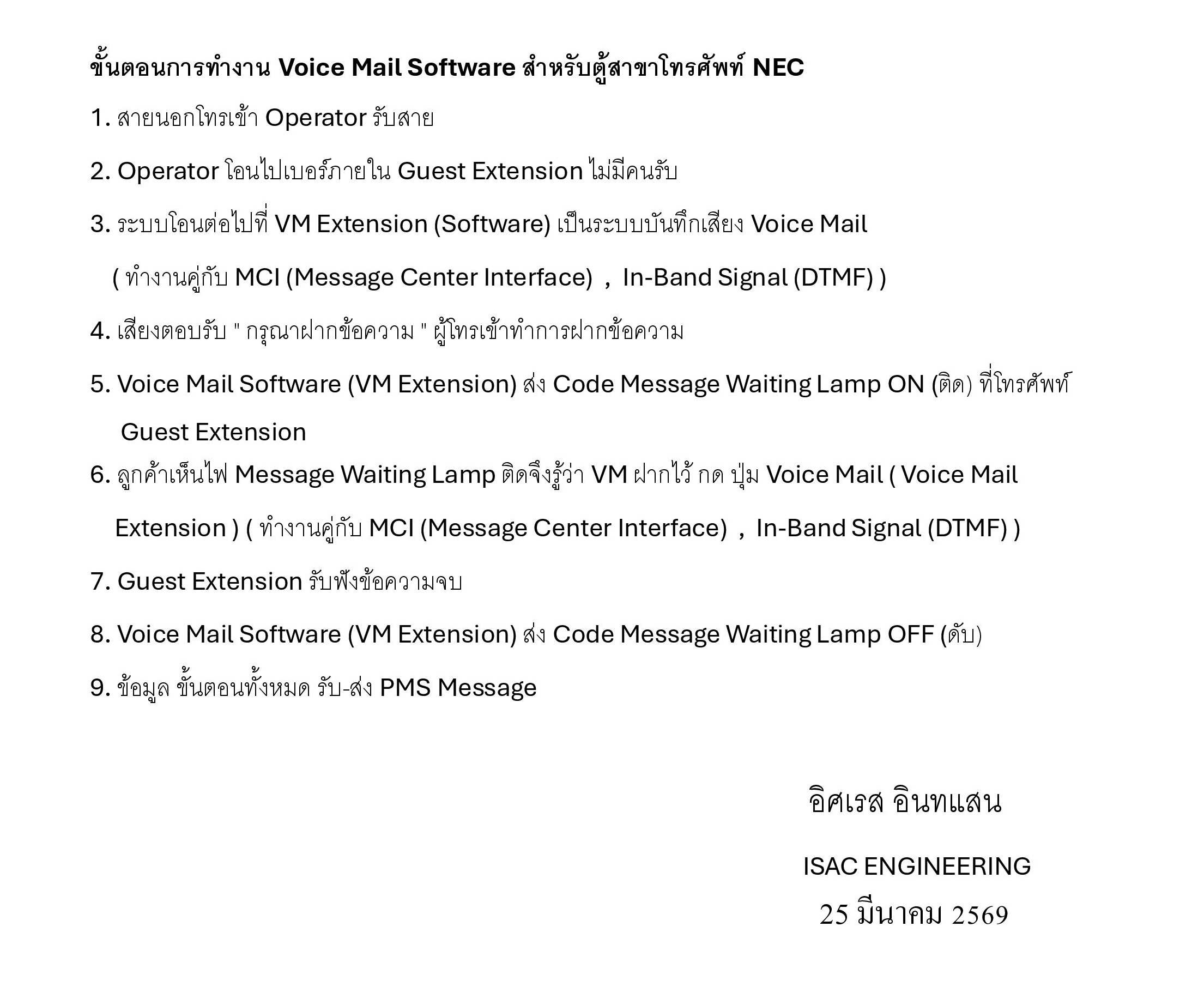ขั้นตอนการทำงาน Voice Mail Software สำหรับตู้สาขาโทรศัพท์ NEC